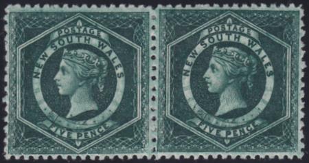 | 1903 5d Dark Blue Green, horizontal pair, perf 12 x 11, SG 329 |