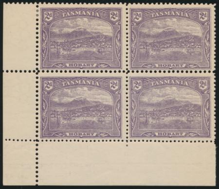 | 1907 2d electrotype crown over A mixed perf (12.4 and 11) LLCnr block of 4, SG 251c - BW T38 |
