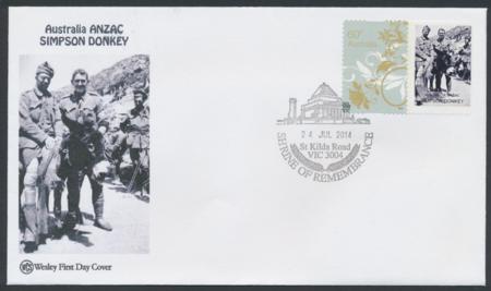 | 24-Jul-2014 Australia ANZAC Simpson Donkey PStamp Wesley Souvenir Cover |