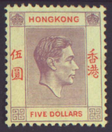 | 1938 Hong Kong $5 Dull-Lilac & Scarlet, SG 159, MH with toned gum |