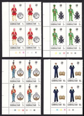 | 1972 Military Uniforms, Set of 4 in corner blocks of 4, SG 300-3 |