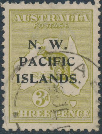 | 1919 NWPI 3d Greenish Yellow Kangaroo SG 109, Part RABAUL NEW BRITAIN Cancel |