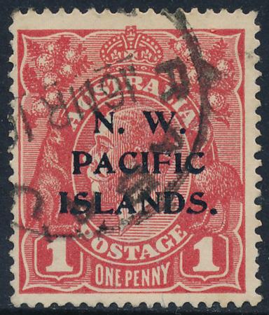 | 1915 NWPI 1d Pale Rose KGV SG 67 type C. Part RABAUL cancel. |