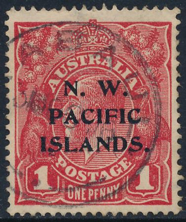 | 1915 NWPI 1d Carmine Red KGV SG 67b type C. Part RABAUL cancel. |