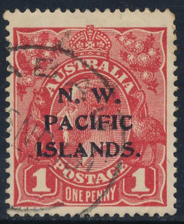 | 1915 NWPI 1d Carmine Red KGV SG 67b type C. Part RABAUL cancel. |