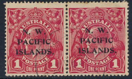 | 1918 NWPI 1d Carmine-Red KGV SG 103. Pair RABAUL, NEW BRITAIN cancel.. |