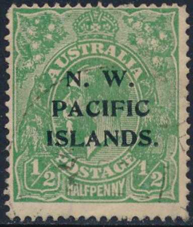| 1919 NWPI ½d Green KGV SG 119 Part RABAUL, NEW GUINEA Cancel. |