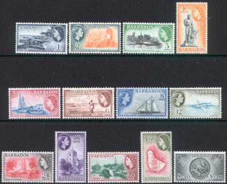 | 1953-61 Barbados QEII Definitives, Set of 13, SG 289-301, MUH |