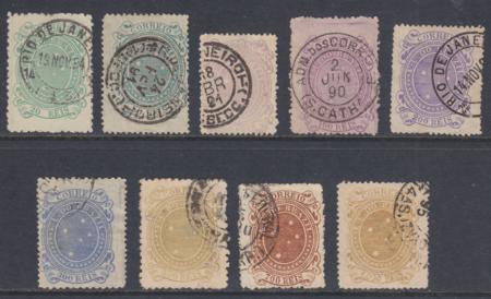 | 1890-91 20r - 1000r (excl 500r) Southern Cross, Sc 99-108 excl 106, used |
