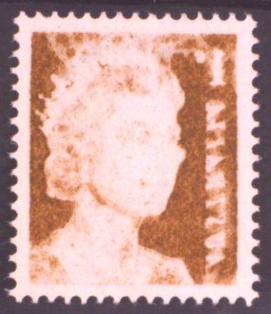 1c brown QEII, strong offset on back of stamp, BW 436c