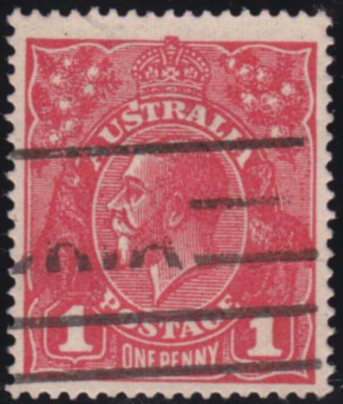 | 1d Carmine Red Die 3, position 56, BW 75o, white flaw on 'S' of Australia |