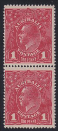 | 1d Deep Scarlet Aniline Rough Paper, vertical pair, position 5/21,27, BW 72A - G60, MUH |