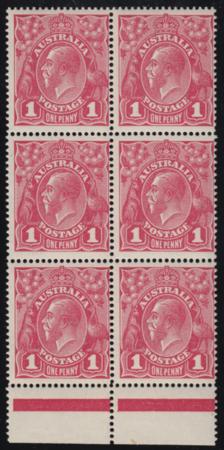 | 1d Carmine Red Inverted Watermark block of 6, BW 71Ya - SG 21cw, position 7/46-47,58-59 |