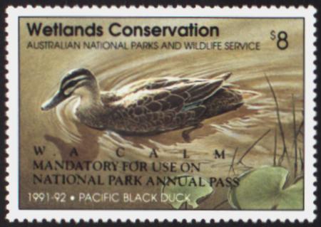 | 1991-2 $8 Australian Duck Stamp - Pacific Black Duck, WA CALM overprint, MUH |