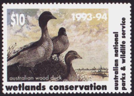 | 1993 $10 Australian Duck Stamp - Australian Wood Duck, MUH |