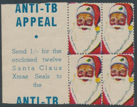 | 1950s Block of 4, Anti TB Appeal Santa Claus Christmas seal
