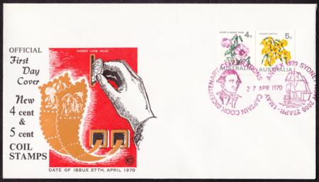 | 27 April 1970 ÁNPEX 70' Australian National Philatelic Exhibition Sydney, (APM 3070). 27 April - 1 May at Wentworrth Hotel, held in conjunction with Captain Cook Centenary Celebrations. On Coil Stamps cover.