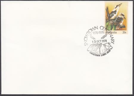 | 13-15 October 1978: Centenary of Snowtown S. Aust. APM6880 on unaddressed 20c PSE Laughing Kookaburra and cancelled "13 OCT 1978" FDU