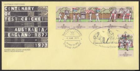 | 9 March 1977 Centenary of Australia versus England Test Cricket Jolimont, (APM 6010) includes cachet on FDC99.