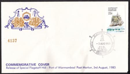 | 3 August 1980 Flagstaff Hill, Port of Warrnambool, (APM 8740), on illustrated and numbered (#4137) souvenir cover.