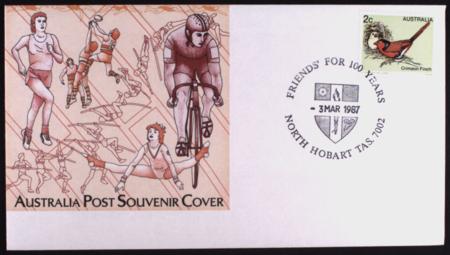 | 3 March 1987 100 years of Friends Society, North Hobart, (APM 18110), features society logo, on AP cover