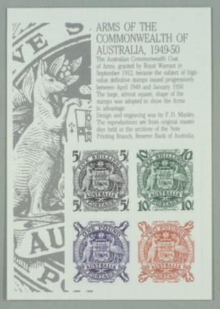 | Card #17: 1949/50 Arms of Commonwealth of Australia, issued 07 February 1990 |