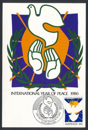 | 1986 International Year of Peace Maximum Card produced by Australian Maximum Cards. |