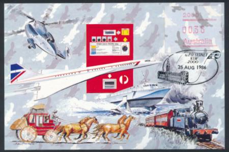 | 1986 Postage Label Vending Machine (Frama) (36c) Maximum Card produced by the Australian Maximum Cards. AMC 313. Issued 25-Aug-1986.