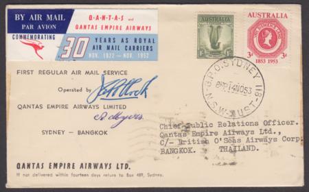 | 14 Nov 1953 - First Qantas Sydney to Bangkok signed cover |