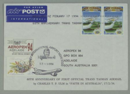 | 60th Anniversary of first Trans-Tasman Airmail, Aeropex '94, 17 February 1994