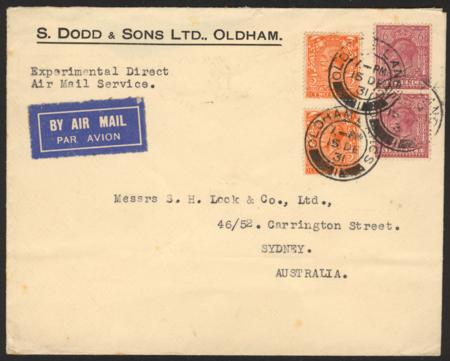 | 7 Jan 1932, England - Australia, postmarked Oldham 15dec31, backmarked Sydney 21 JAN 1932, (AAMC 245).