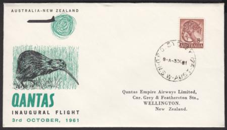 | 3 Oct 1961, First Qantas Lockheed Electra flight Sydney-Wellington, (AAMC 1451)postmarked 3OC61, cachet on back, no backmark