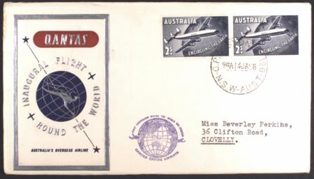 | 14 Jan 1958, Qantas round the world flight, via Sydney-USA-London-Sydney, (AAMC 1386). |
