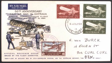 | 16 July 1964, 50th Anniv. of first Melbourne-Sydney air mail, (AAMC 1522) |