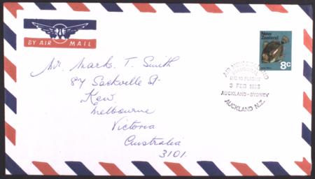 | 3 Feb 1973, Air New Zealand inaugural DC10 flight, (AAMC 1766), postmarked Auckland 3FEB1973, backmarked Sydney 3FE73