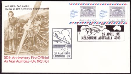| 23 April 1981, Commemorative Flight Melbourne (Vic) to London, (AAMC 1911), special postmark Melbourne 23 April 1981 and London cachet, no backmarking