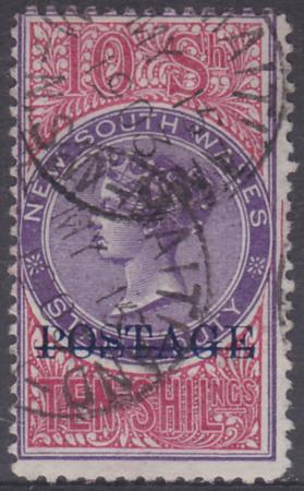 | 1894 10s Violet & Claret postage in Blue, perf 12, SG 275, used