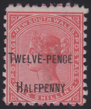 | 1891 12½d surcharge on 1s Red, perf 10, SG 268, unused no gum |
