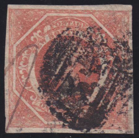 | 1857 1/- Brownish Red Queen Victoria, imperf 4 margins, SG 101, used |