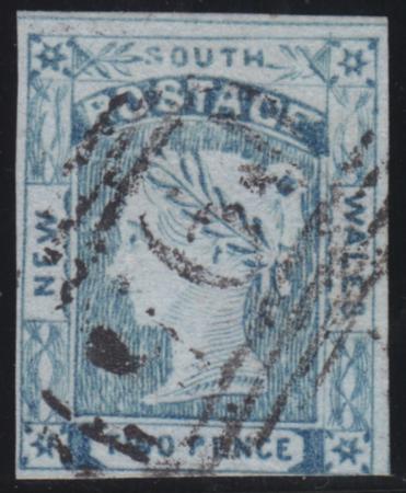 | 1853 2d Deep Ultramarine, Plate 11, stars in corners, Queen Victoria, Imperf Laureate Issue, 3.5 margins, SG 60 , used