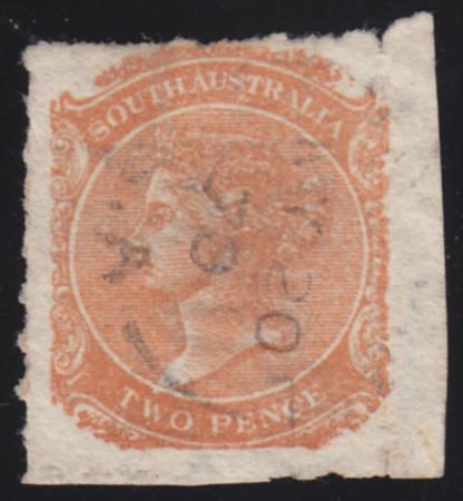 | 1868 2d Pale Orange Red Queen Victoria, rouletted, wmk reversed, SG 153, used