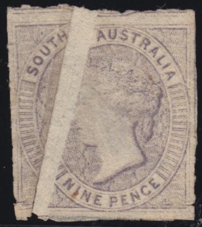 | 1860 9d Grey Lilac mint no gum with large pre-print paper fold and extra roulette line through base, SG 34 |