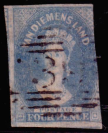 | 1857 4d Pale Blue Queen Victoria, imperf 3 margins, SG 36, used |