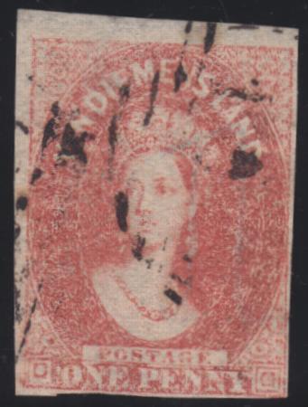 | 1863 1d Brick Red Queen Victoria, imperf 2 margins, SG 27, used