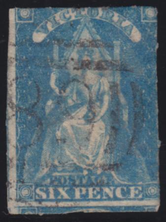 | 1858 6d Light Blue Queen Victoria, rouletted, SG 73a, used