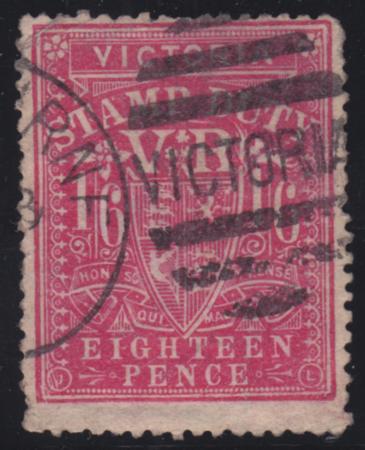 | 1886 1/6 'Eighteen Pence' Bright Rose Carmine, SG 267a, used