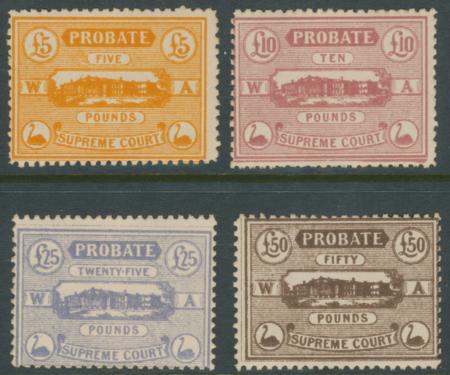 | 1922 Probate new colours £5, £10, £25 & £50 BFoot 45-48, MUH. Elsmore 63-66