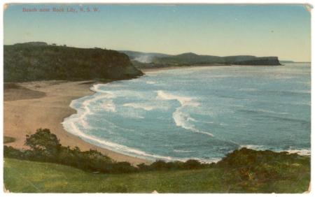 Kangaroo Series postcard showing a view of the beach near Rock Lily, New South Wales.