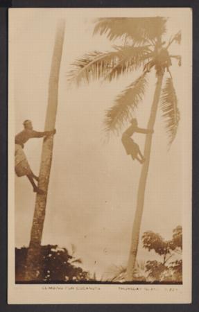 | Climbing for Coconuts, Thursday Island - St Austell Studio Real Photo Postcard |