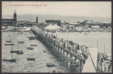 South Australian semi-official postcard featuring crowds celebrating Commemoration Day, Glenelg.